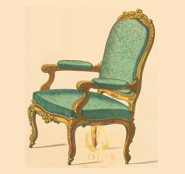 Phong cách Louis XV nổi bật với đường cong mềm mại, chân ghế và tựa lưng làm theo chiều thoải dần về sau.