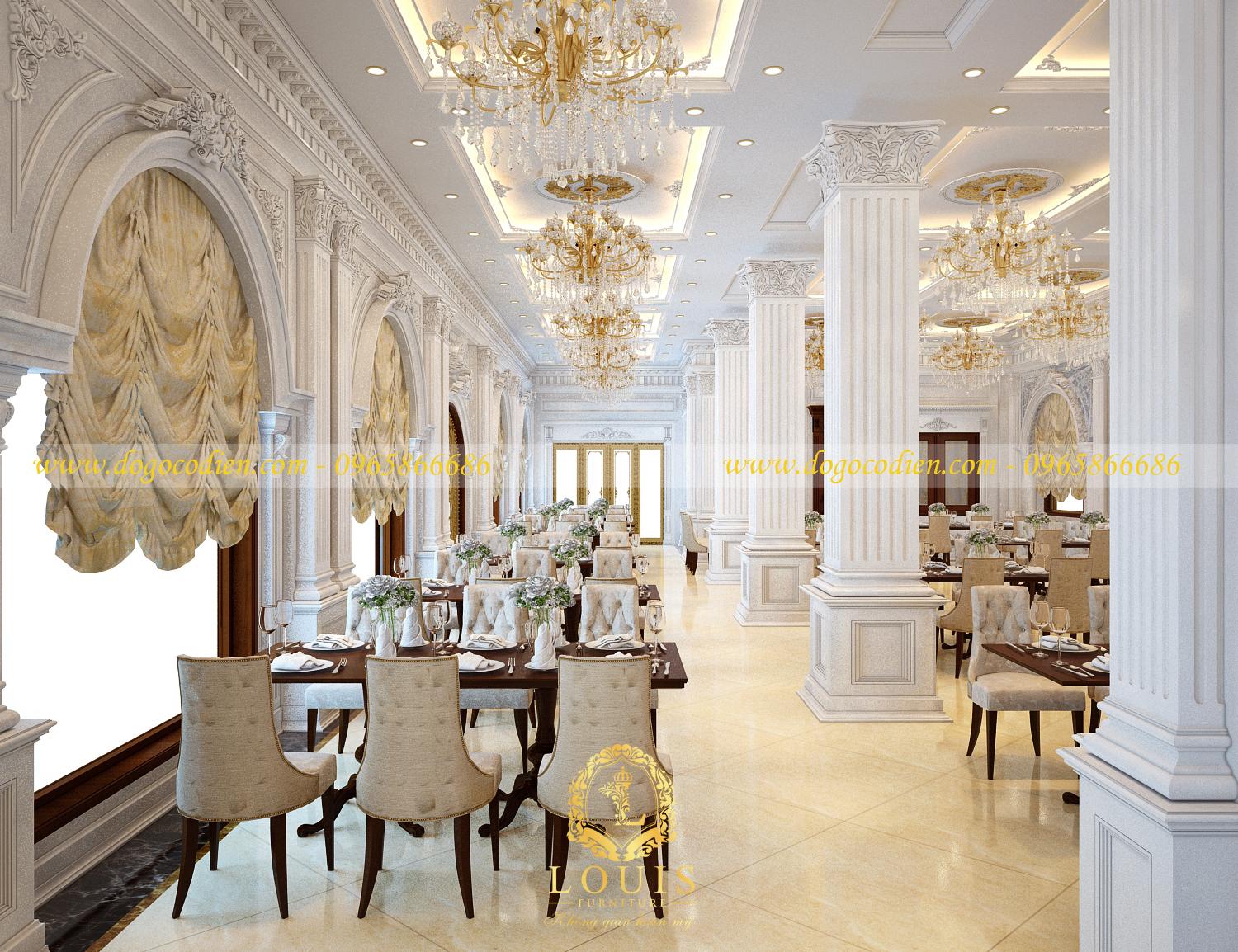 Ở phần 1, chúng ta đẫ cùng nhau khám phá sự sang trọng và đẳng cấp trong thiết kế nội thất phòng ngủ VIP của khách sạn Thạch Thất. Trong chuyên mục tuần này, Louis sẽ đưa các bạn tham quan khu nhà hàng và quán cafe để cảm nhận rõ nét vẻ đẹp hoàn mỹ, sang trọng và tinh tế trong lối kiến trúc nội thất cổ điển